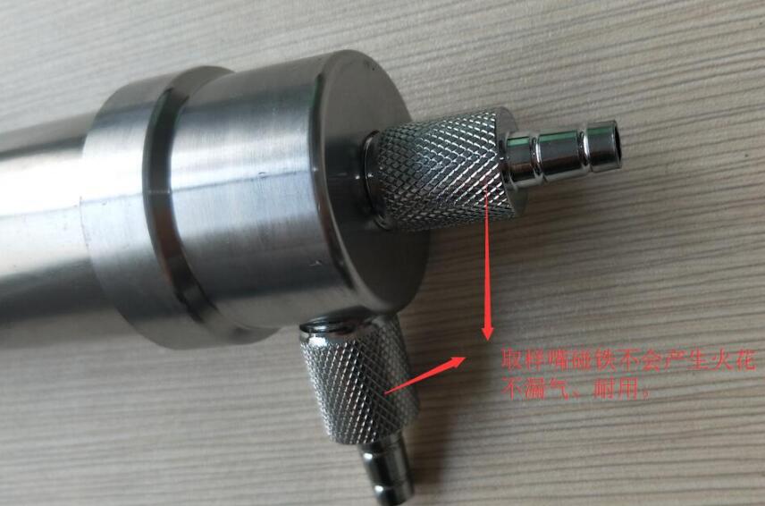 2. 抽气时,侧面进气接头内的胶塞阀自动打开,高负压瓦斯流入气筒内。